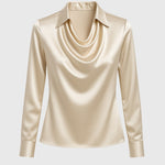 Ova sofisticirana bluza s drapiranim izrezom i satenskim završetkom daje luksuzan izgled i laskavu siluetu. Idealna je za ured i večernje događaje, gdje su stil i klasa u fokusu. Kombinirajte je s suknjom ili elegantnim hlačama za bezbrižan i stiliziran izgled.