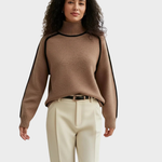 Ovaj oversized pulover s visokim ovratnikom nudi savršenu kombinaciju modernog stila i udobnosti. Suptilni kontrastni detalji duž šavova dodaju jedinstven izgled, čineći ga svestranim komadom u tvojoj garderobi. Idealan za nošenje u slojevima ili samostalno, pruža savršen balans između elegantnog i ležernog.