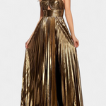 Haljina Branimira blista s majestetskom prisutnošću zahvaljujući svom metalik materijalu, preklopu i prednjem raskoraku s strateškim nabora. Široka silueta elegantno pada do gležnjeva, stvarajući eterealni pokret s svakim korakom. Komad osmišljen da se istakne pod svjetlima i ostavi trag na svakom događaju.
