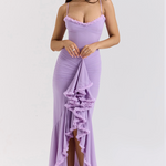 Impresivna i ženstvena haljina s prilagođenim krojem koja oblikuje tijelo i ističe siluetu. Detalji s volanima na dekolteu i suknji donose dašak romantike i elegancije. Idealna za večernje izlaske i posebne prigode kada želite biti u središtu pažnje.