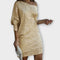 Sjajna Haljina za Noć idealna je za one koji žele istaknuti moderni izgled pun stila. S ležernim krojem, dugim rukavima i asimetričnim izrezom koji otkriva jedno rame, ovaj model spaja udobnost i senzualnost. Sjajni završetak zapanjujuće hvata svjetlost, čineći je savršenom za zabave, večere ili posebne izlaske.