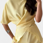 Svjež, ženstven i pun ljetnog šarma, set Sara ističe siluetu svojim uskim topom s ukriženim trakama i laganom suknjom. Široki izrez omogućuje nošenje na ramenima za romantičan dodir, dok elastična struk osigurava udobnost bez gubitka stila.