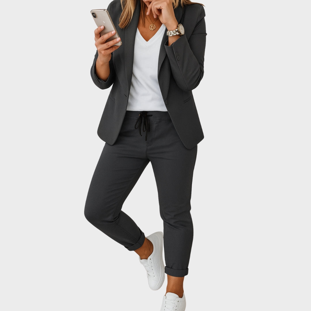 Ovaj set spaja bezvremenski dizajn s visokokvalitetnim materijalima, nudeći komotan, svestran izgled koji ostavlja dobar dojam. Lagan je za kombiniranje i prilagođava se različitim prilikama.