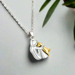 Slavite bezuvjetnu ljubav između vas i vašeg vjernog suputnika s ovom elegantnom ogrlicom. Dirljiv dizajn žene i psa u zagrljaju čini ovaj dodatak mnogo više od običnog ukrasa — to je simbol odanosti, ljubavi i povezanosti.