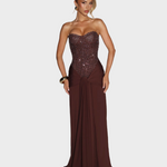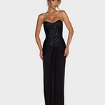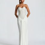 Zavodljiva. Sofisticirana. Nezaboravna. Selina Maxi haljina spaja senzualnu ženstvenost s luksuznom večernjom odjećom. Korzet s blistavim aplikacijama stvara zadivljujuću siluetu, dok lepršava suknja elegantno pada preko bokova, savršeno naglašavajući vašu figuru. Haljina koja dodaje glamur svakom pokretu - idealna za posebne prigode, elegantne događaje ili večeri kada želite biti u središtu pažnje.
